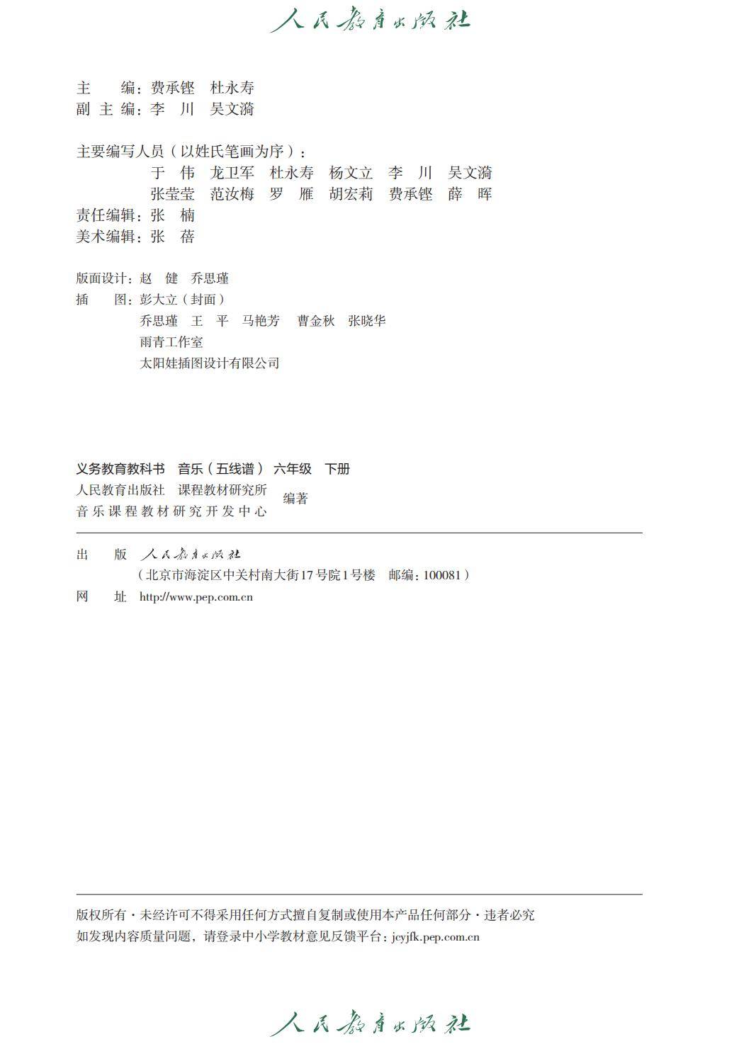 2026春人教版六年级音乐下册电子课本(高清版五线谱新教材)就为您介绍到这里,资源来源于网络,仅为学习交流之目的进行分享,其版权均归原出版社及作者所有。