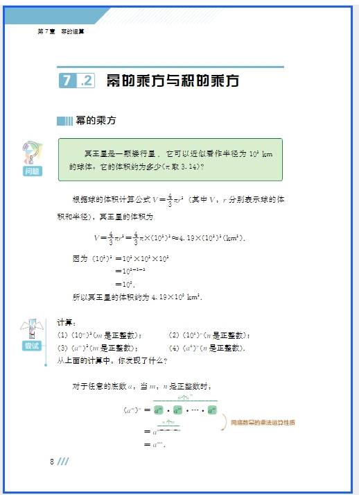 3. 问号标注不懂的地方(如 “为什么幂的乘方是指数相乘不是相加?”“三线八角怎么快速识别?”),课堂上重点听老师讲解,针对性解决疑问。