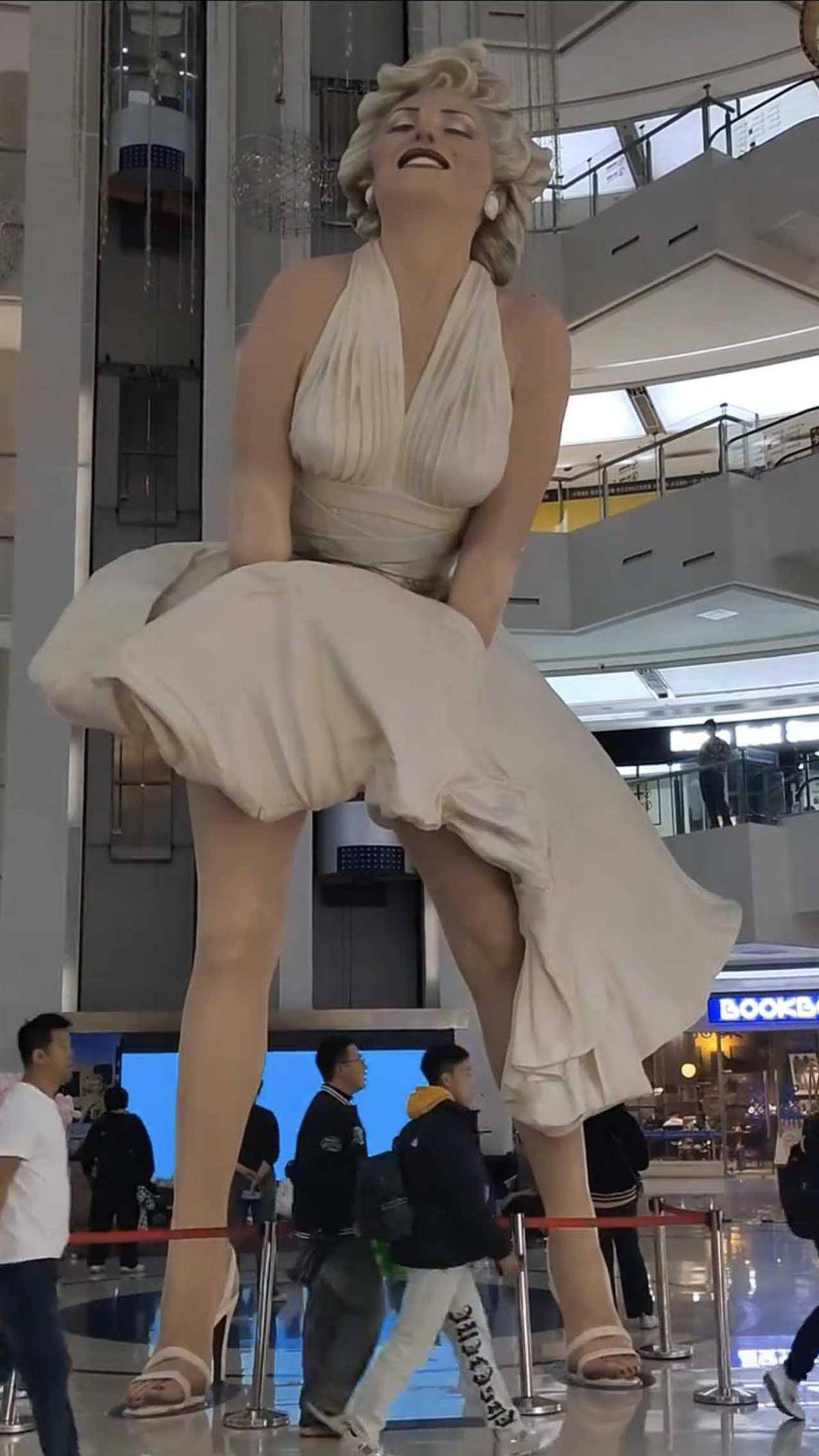公开资料显示,该商场于2017年7月开业,2016年施工时该雕塑已入驻,高8米,造型取自玛丽莲·梦露在影片《七年之痒》中的造型,引进自美国原版梦露雕塑,拥有相关版权。