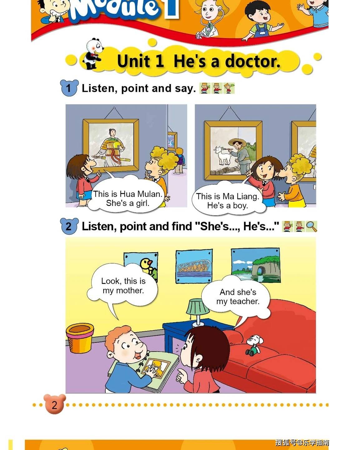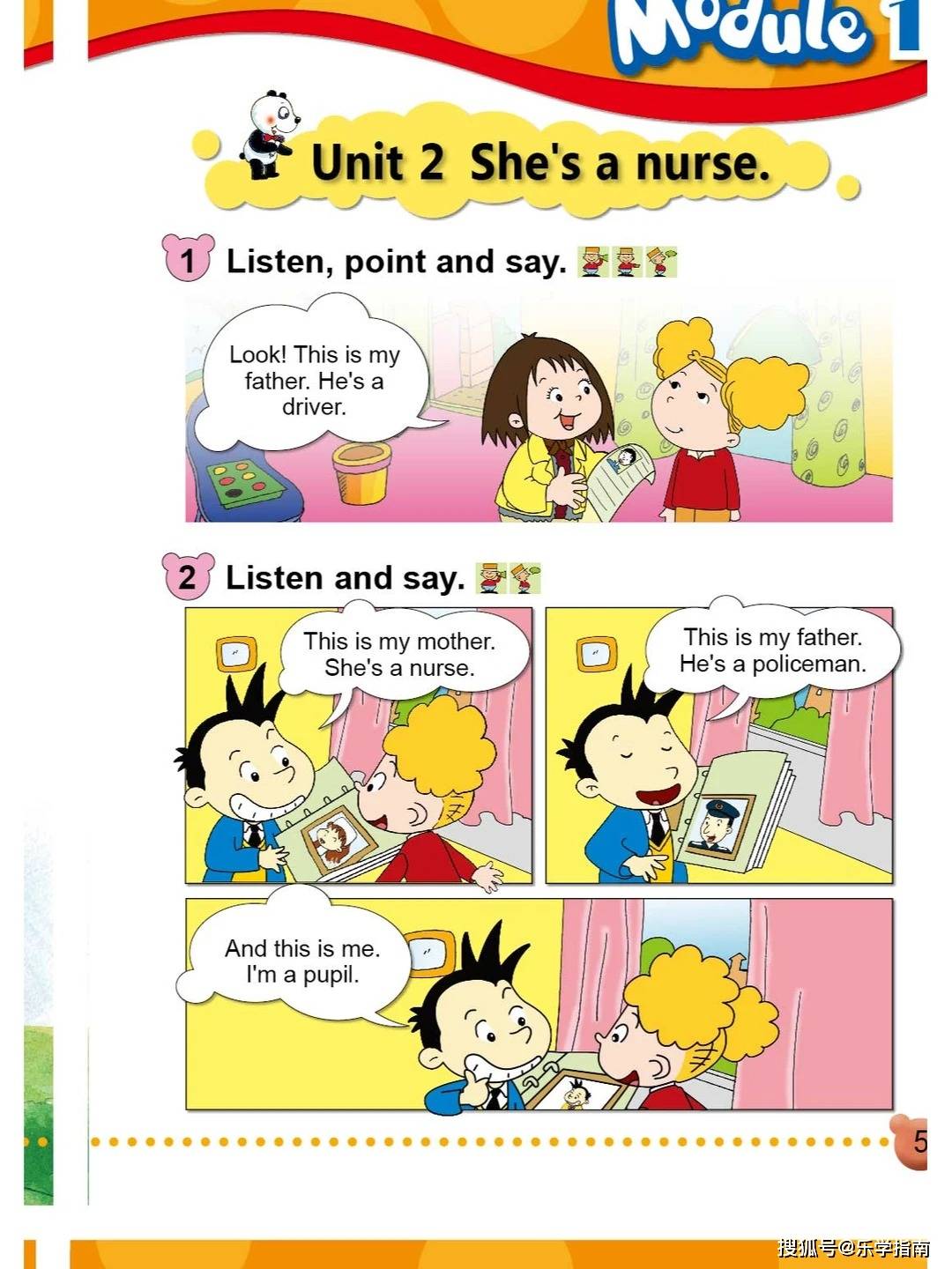 这套教材共 10 个模块,主题覆盖职业、方位、数量、身体部位、动物、运动等孩子熟悉的生活场景。Module 1 从职业入手,用 “He's a doctor.”“She's a nurse.” 等简单句式,让孩子在介绍家人的语境中掌握职业词汇;Module 2 到 Module 7 则依次探索方位表达、数量提问、身体认知、动物描述等内容,每个模块的两个单元由浅入深,先通过 “Listen, point and say” 环节输入语言,再用 “Practise”“Play the game” 等活动输出运用。比如 Module 1 的游戏环节,孩子通过 “Point and say” 的互动,在错误修正中巩固 “He's/She's” 的用法,这种 “输入 — 内化 — 输出” 的闭环设计,符合低龄儿童的认知规律。