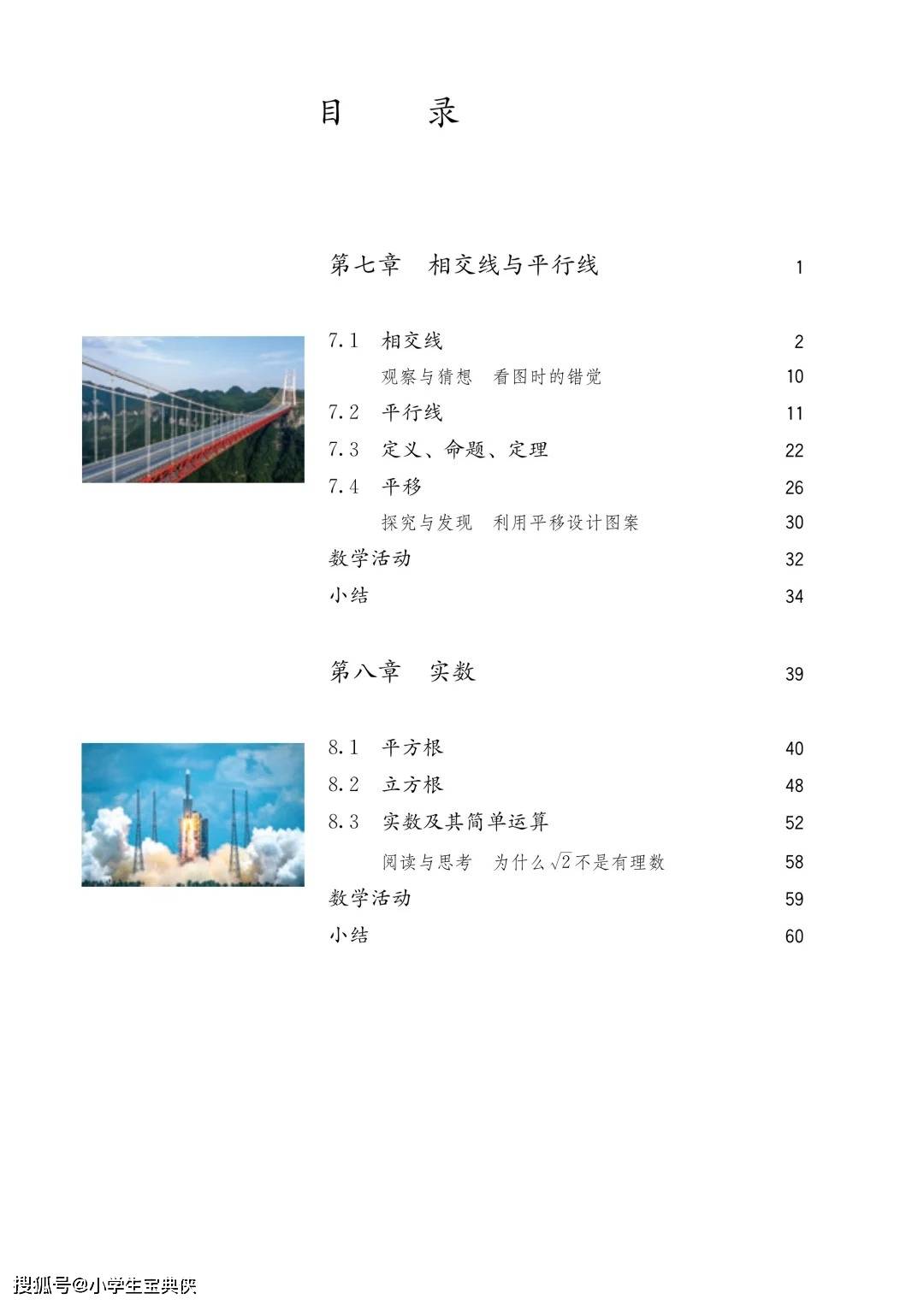 教材开篇以桥梁、公路等生活场景切入,从相交线的对顶角、邻补角性质,到平行线的判定与性质,再到图形的平移,引导学生通过直观想象、操作确认、推理论证等方法,初步体会严谨的几何推理,培养 “言之有据” 的思考习惯。这不仅为后续三角形、四边形的学习筑牢基础,更能让学生理解 “数学结论需要逻辑支撑” 的学科本质。