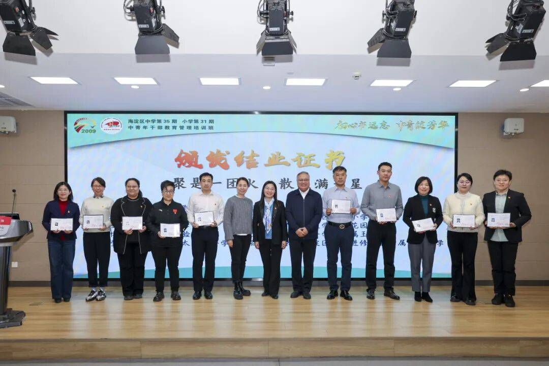 1月9日,海淀区中学第35期、小学第31期中青年干部教育管理培训班结业式举行。海淀区委教工委副书记史怀远,区教育党校党支部书记、常务副校长、中小学干部研修中心主任赵欣及部分学校书记、校长出席结业式。
