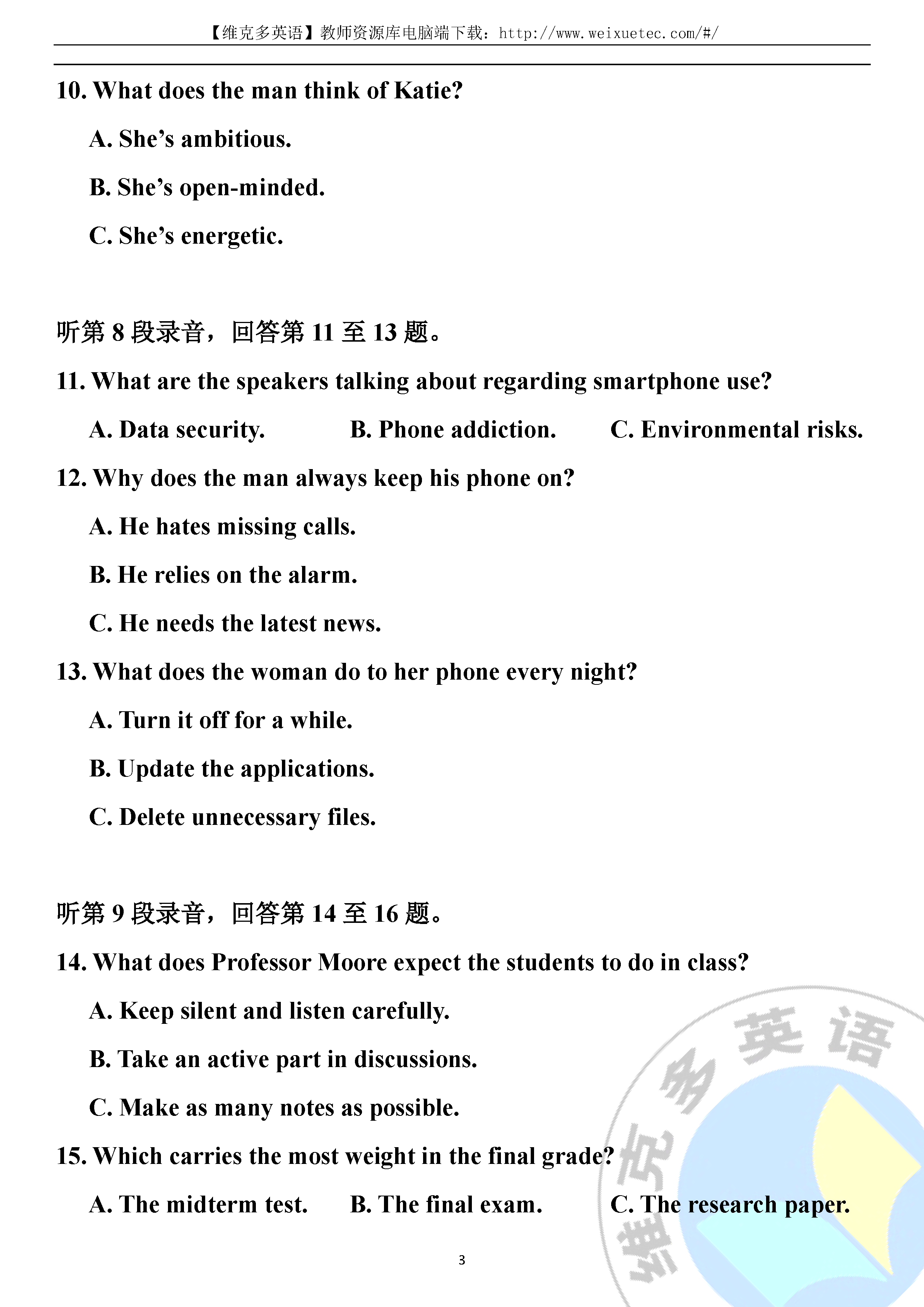 在维词教学系统——“高考专题”——“高考真题”选择“2026”年份下载。