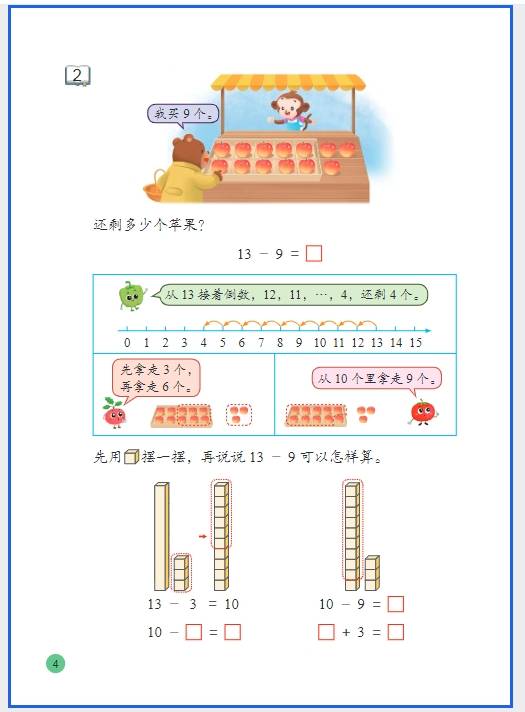 这是下册计算的核心难点,上册学了 20 以内进位加法,下册重点攻克退位减法,预习重点是理解算理(破十法),不是死记答案