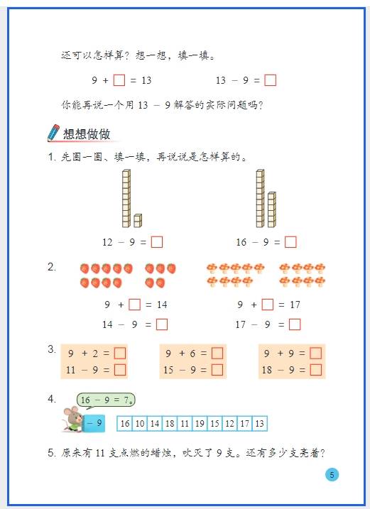 • 每天花 5 分钟练 20 以内进位加法口算(如 9+3=12、8+5=13),熟背 “凑十歌”,这是学退位减法的基础;