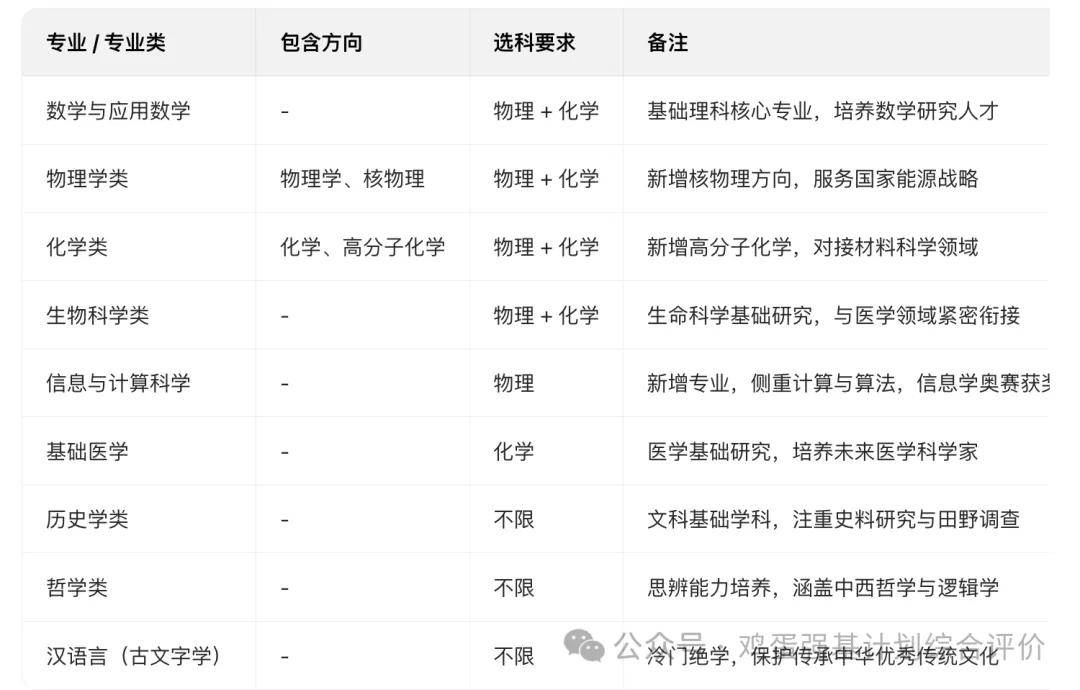 学科覆盖:文理医全面布局,涵盖数学、物理、化学、生物、医学、文史哲等基础学科,新增核物理、高分子化学、信息与计算科学等战略专业