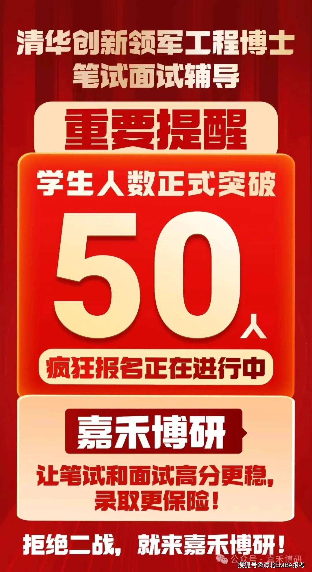 截止1月22日!清华创新领军工程博士面试和笔试辅导学生仅2天报名突破50名!