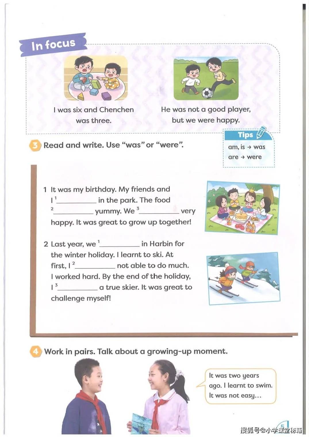开篇第一单元 “Growing up” 就用杨阳和弟弟晨晨的成长故事,把一般过去时的语法点融入鲜活的亲情叙事。孩子在 “I was six and Chenchen was three” 的句子里,自然掌握 “was/were” 的用法,更在 “从吵闹婴儿到并肩上学” 的情节中,读懂陪伴与成长的意义。搭配 “分享成长瞬间” 的小组活动,英语不再是孤立的语法题,而是可以讲述自己故事的工具。