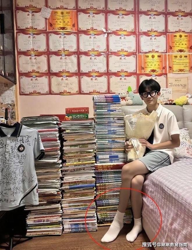 而墙边堆着满满三大摞的习题册,任谁看到这一幕,都会发自内心地觉得,这个男孩是真学霸,可评论区的网友们却发现了端倪,非但没有认可男孩的学霸成就,反而给男孩贴上了标签。