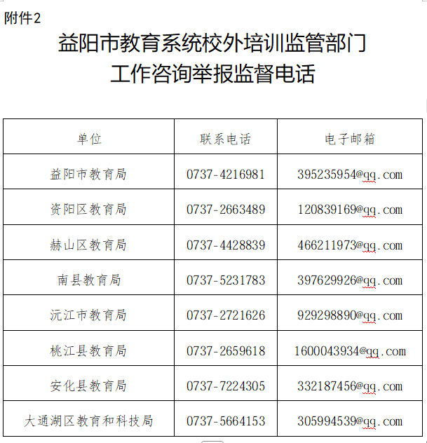 2.益阳市教育系统校外培训监管部门咨询举报监督电话