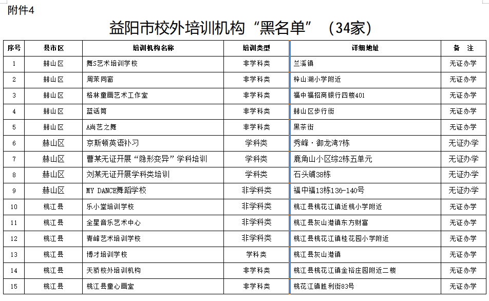 4.益阳市校外培训机构“黑名单”(34家)