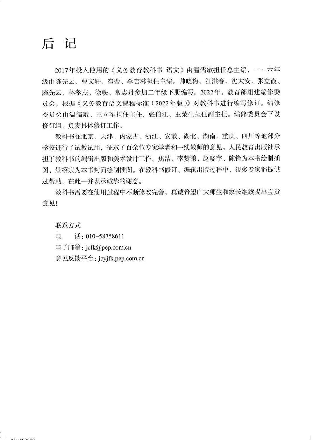 2026人教部编版二年级语文下册电子课本(PDF高清版新教材)就为您介绍到这里,资源来源于网络,仅为学习交流之目的进行分享,其版权均归原出版社及作者所有。
