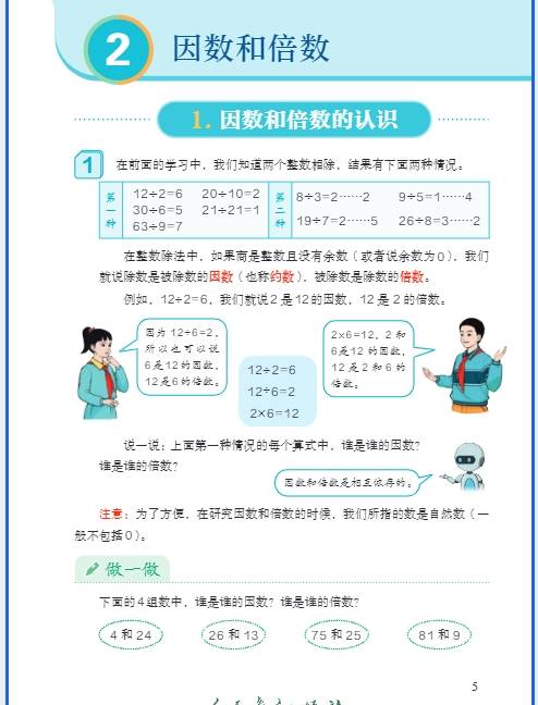 • 核心考点:因数和倍数的意义、2/3/5 的倍数特征、质数与合数、最大公因数与最小公倍数