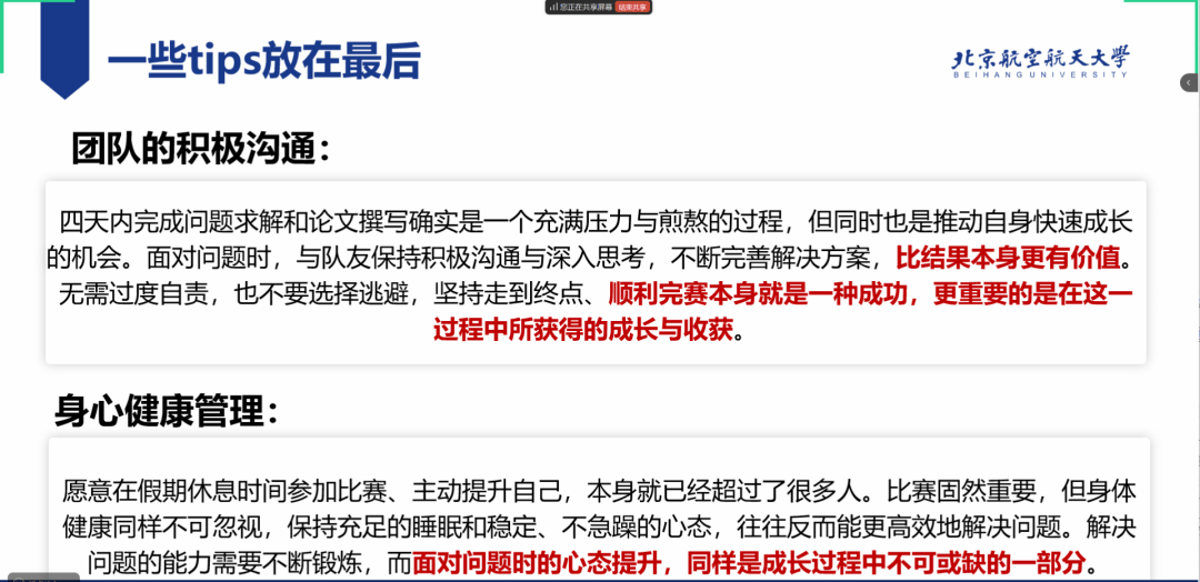 最后,汪祉轩提醒大家,要充分加强团队内的积极沟通,并做好身心健康管理,和谐融洽的团队氛围和冷静平静的心态才是最有价值的收获,并祝愿大家比赛顺利、发挥出最佳水平,取得理想成绩。