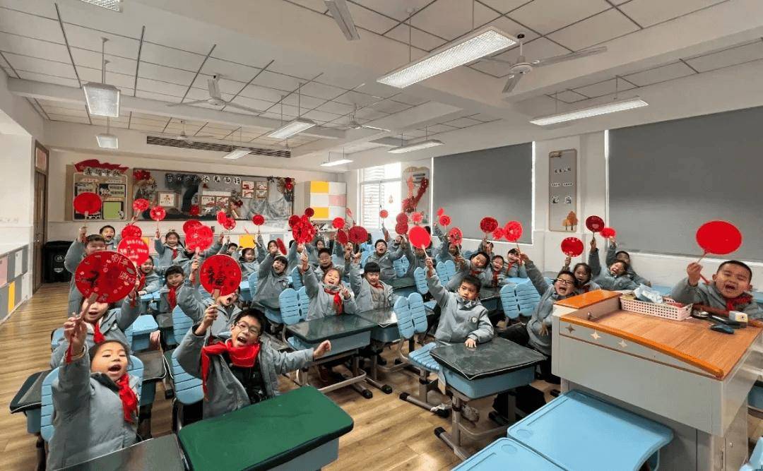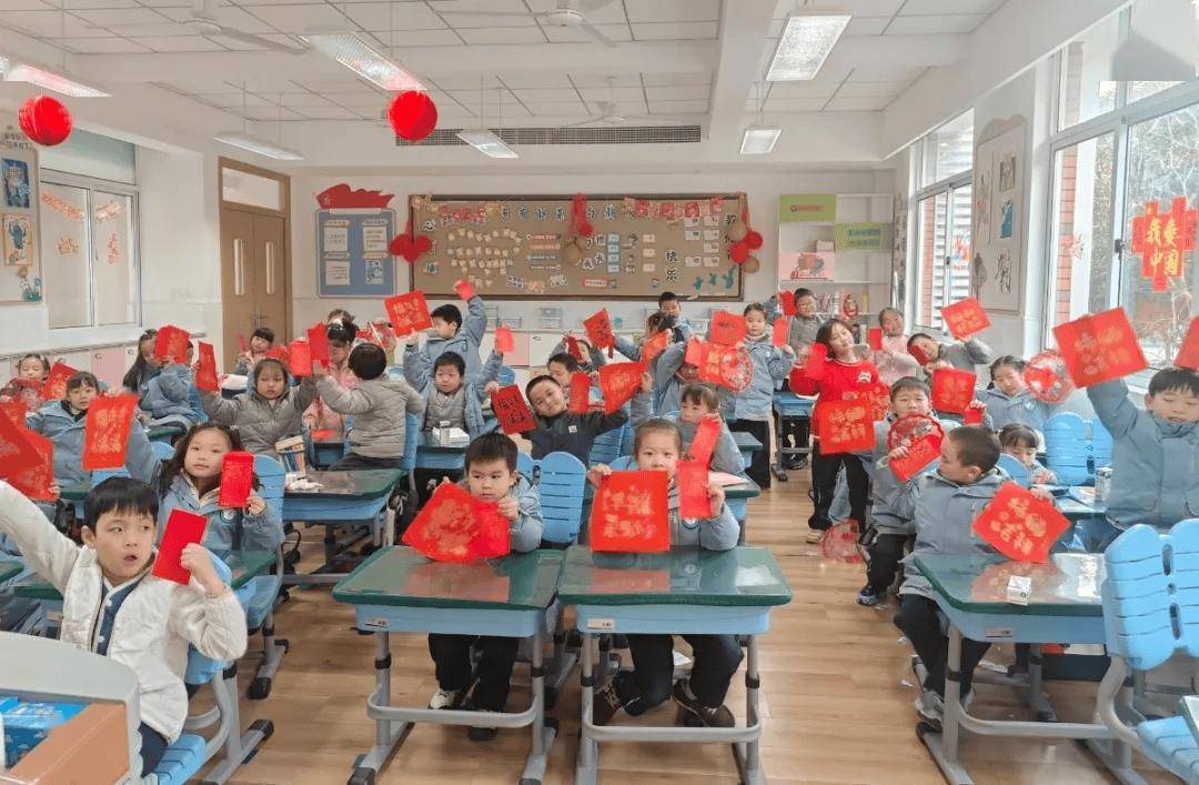 写下新年心愿,悬挂在班级心愿树上,寓意“播种希望,收获成长”。“我想学会骑自行车”“愿家人健康快乐”……纯真的愿望在卡片上闪闪发光。