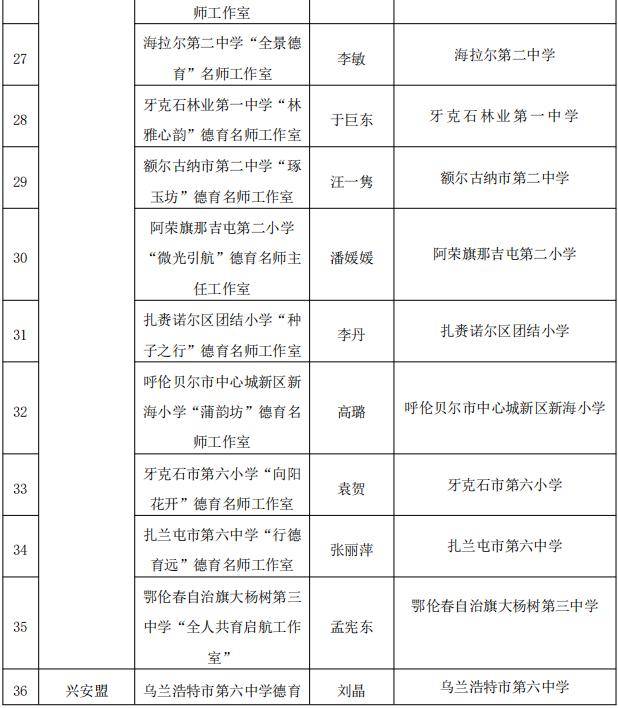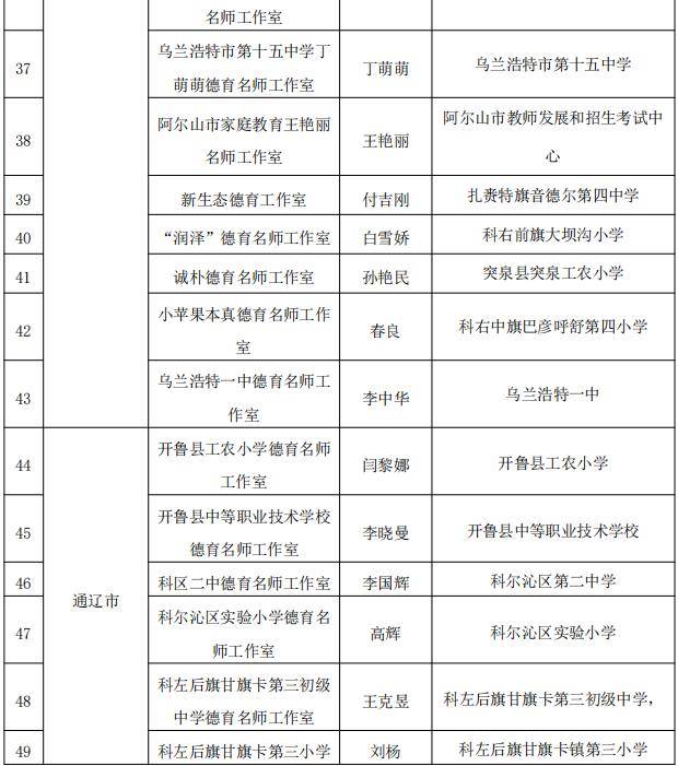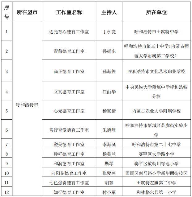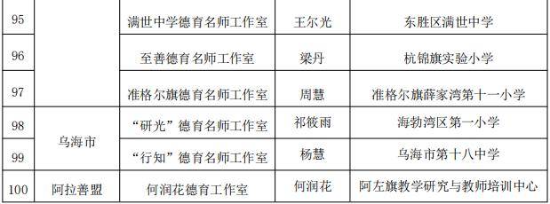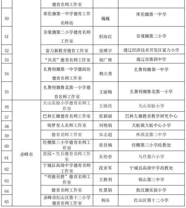 按照《关于开展第二批全区中小学德育名师工作室(培育)建设的通知》,经学校推荐、盟市教育行政部门遴选、自治区教育厅审核公示等程序,现将第二批全区中小学德育名师工作室(培育)建设名单予以公布,一起来看——