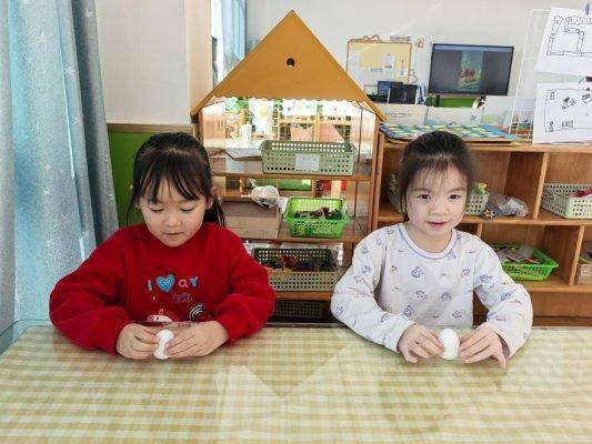 大班的宝贝们解锁了立春传统习俗——“立蛋”,开启了一场“与春天的较量”,活动中,孩子们小心翼翼地将鸡蛋放在桌面,屏息凝神、轻轻调整,失败了不气馁,一次次重新尝试,有的宝贝还互相分享立蛋小技巧。当鸡蛋成功立起的那一刻,孩子们脸上洋溢着自豪的笑容,欢呼声此起彼伏,在趣味挑战中不仅体验了传统习俗的乐趣,更培养了耐心和专注力。