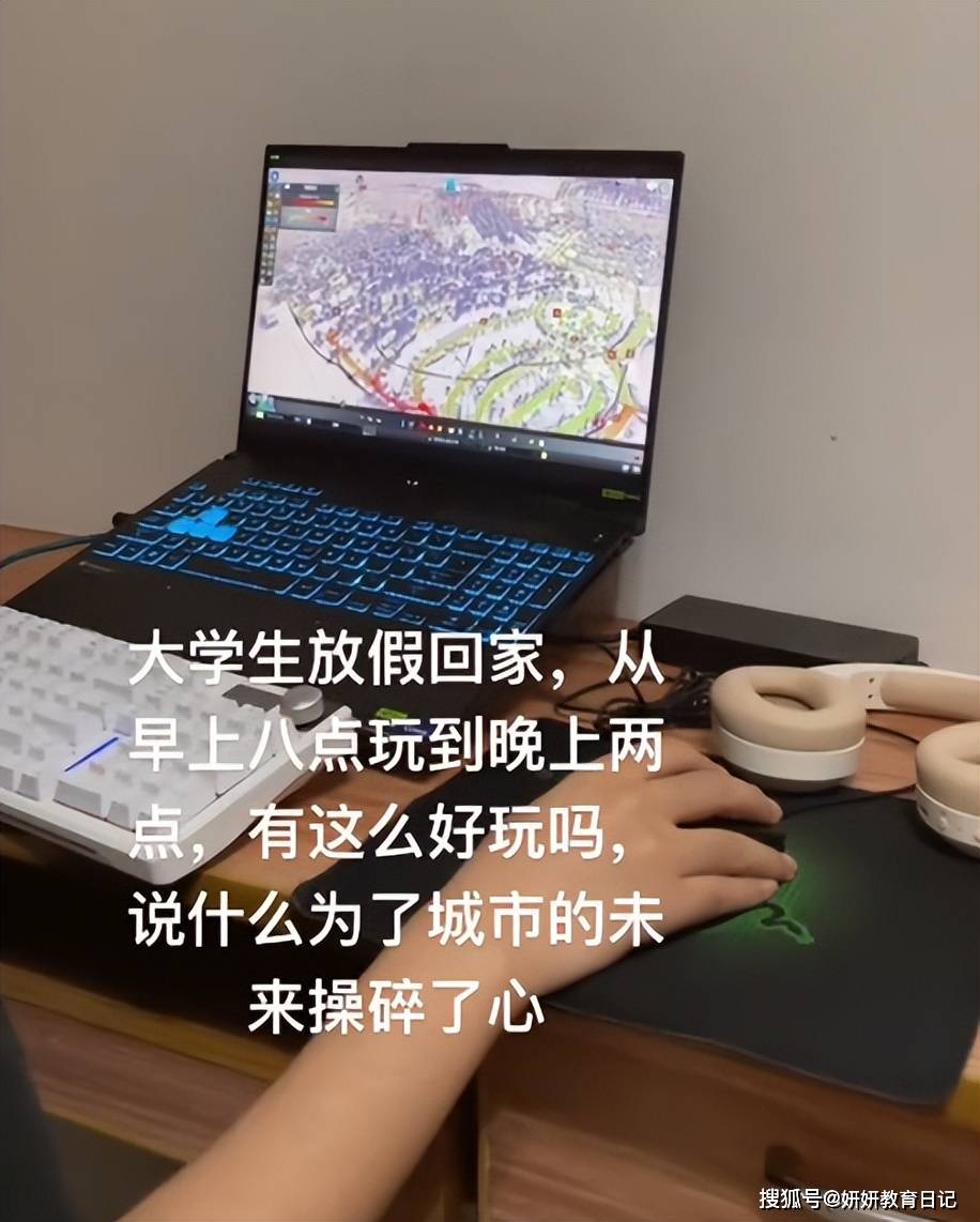 戴一个耳麦,并不理会外面家长在干什么。可是这位家长却破防了,原来她觉得自己供孩子上大学是一件很辛苦的事情,可孩子放假后却天天打游戏。