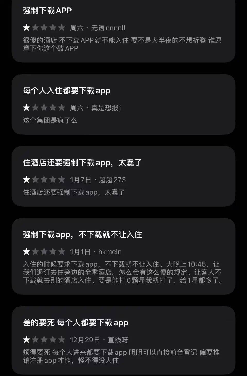 该网友不理解道,不下载酒店官方的App,顾客就不能入住酒店,“我未成年的弟弟妹妹,我家里不会认字的老人,他们不能用智能手机下载App,酒店就不能为他们提供住宿服务。”