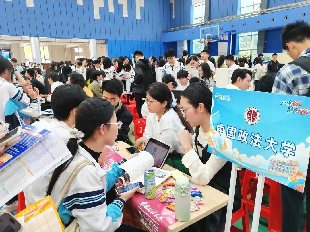 在中国人民公安大学、中国人民警察大学的展位前,驻足的同学格外多。几位身着警礼服返校的师兄师姐身姿挺拔、目光坚定,他们细致解答着每一个关于报考条件、体能测试、专业选择的提问,也将警校生特有的自律、担当与使命感,融入每一句真诚的分享。