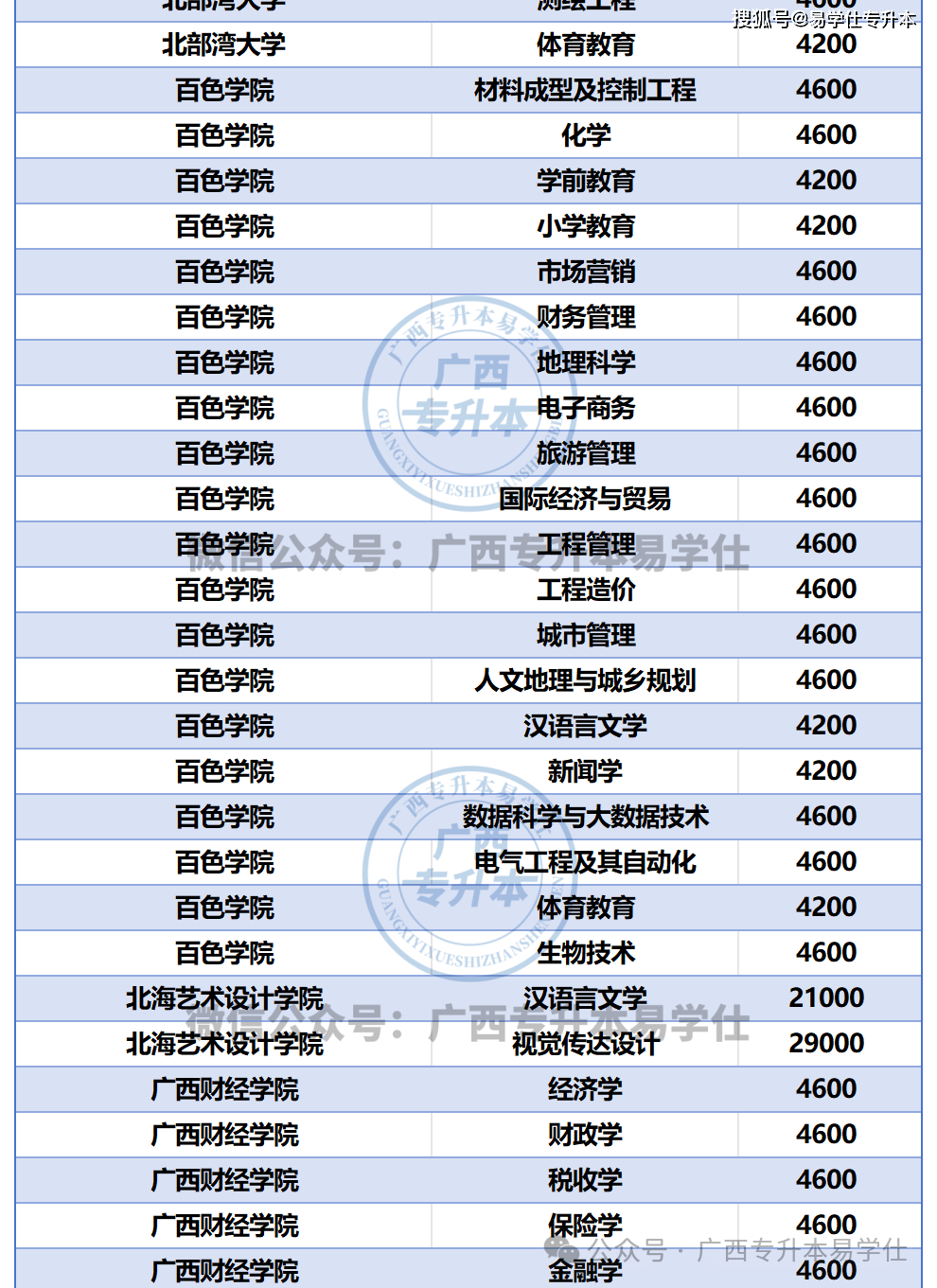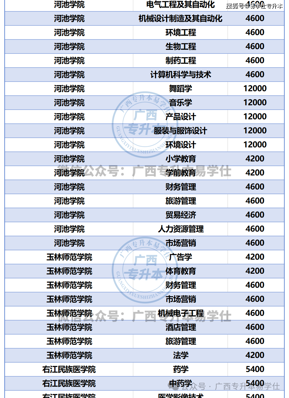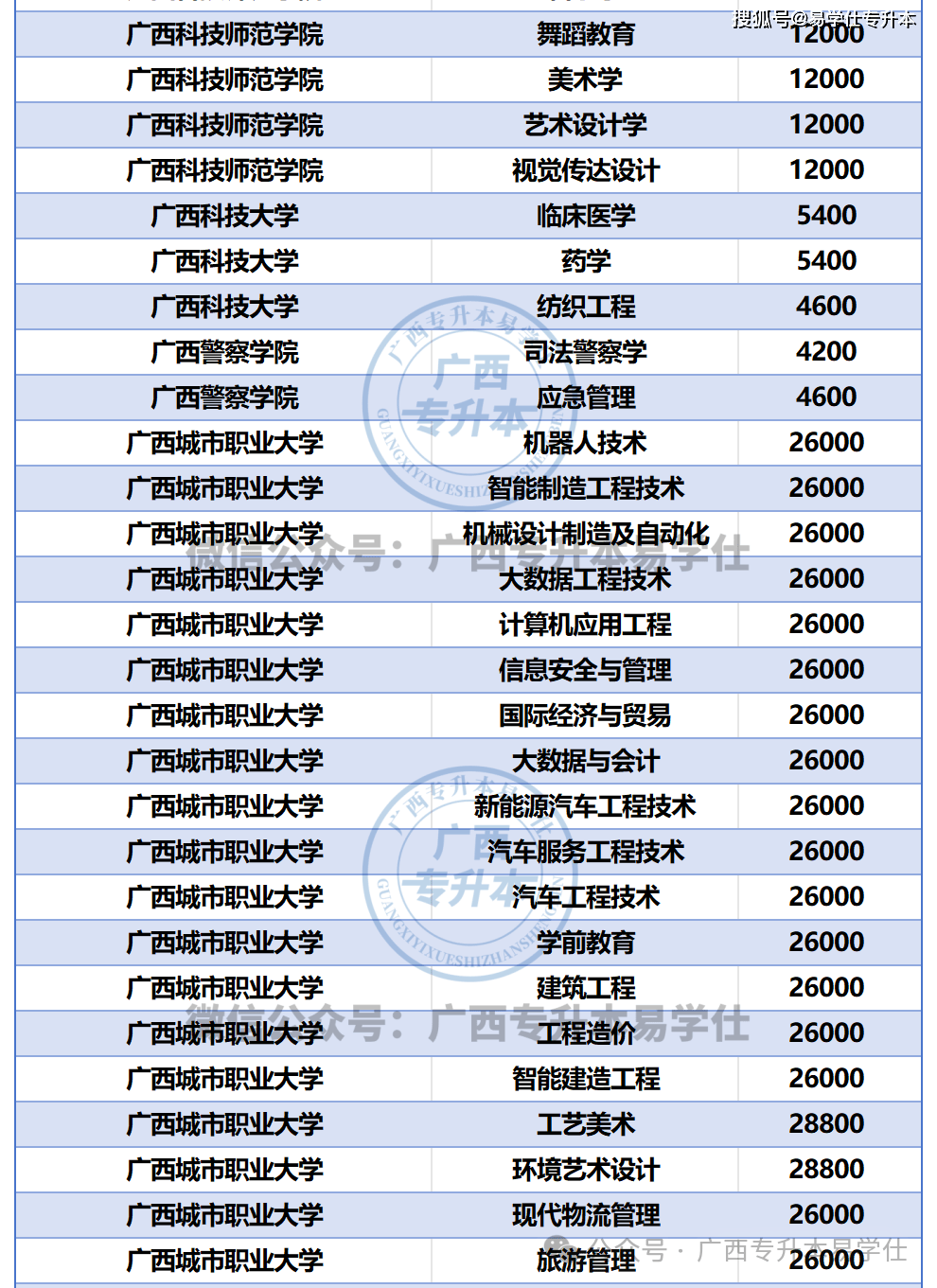 以下是2026年广西专升本各院校详细招生专业及学费情况。
