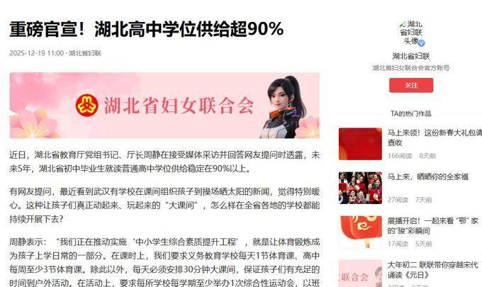 湖北地区的信息传播范围更为广泛,据教育厅在2025年12月的公告,未来五年内,初中毕业生获得普高学位的比例将稳定维持在90%以上。全省的初中学生中,有九成能够进入普通高中,这比过去的五五分流要高得多。