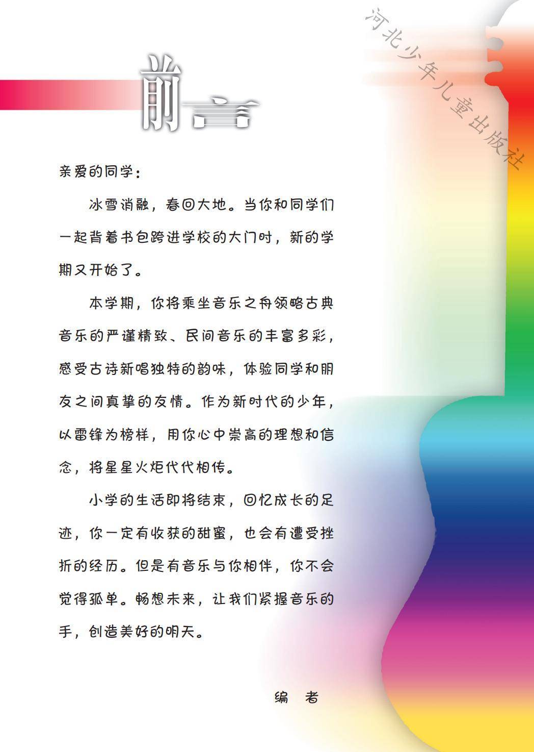 2026冀少版六年级音乐下册电子课本(PDF版高清新教材)就为您介绍到这里,资源来源于网络,仅为学习交流之目的进行分享,其版权均归原出版社及作者所有。