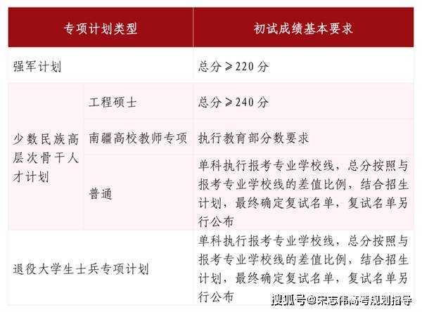 3. 符合少数民族照顾政策(工作单位和户籍在国务院公布的民族区域自治地方,且定向就业单位为原单位的少数民族在职人员)并已按规定申报的考生,按照教育部规定的初试成绩要求进入复试。