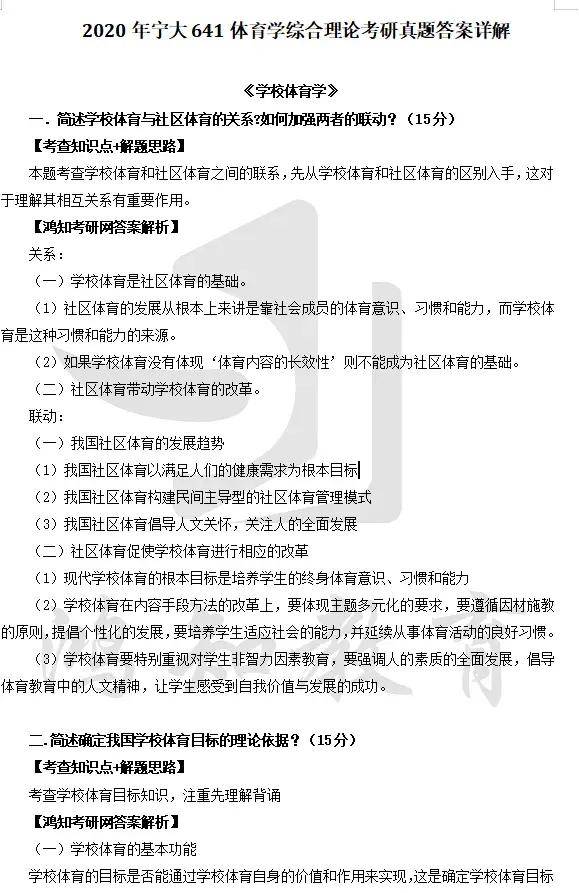 2011-2021、2024年宁波大学641体育学综合理论考研真题答案