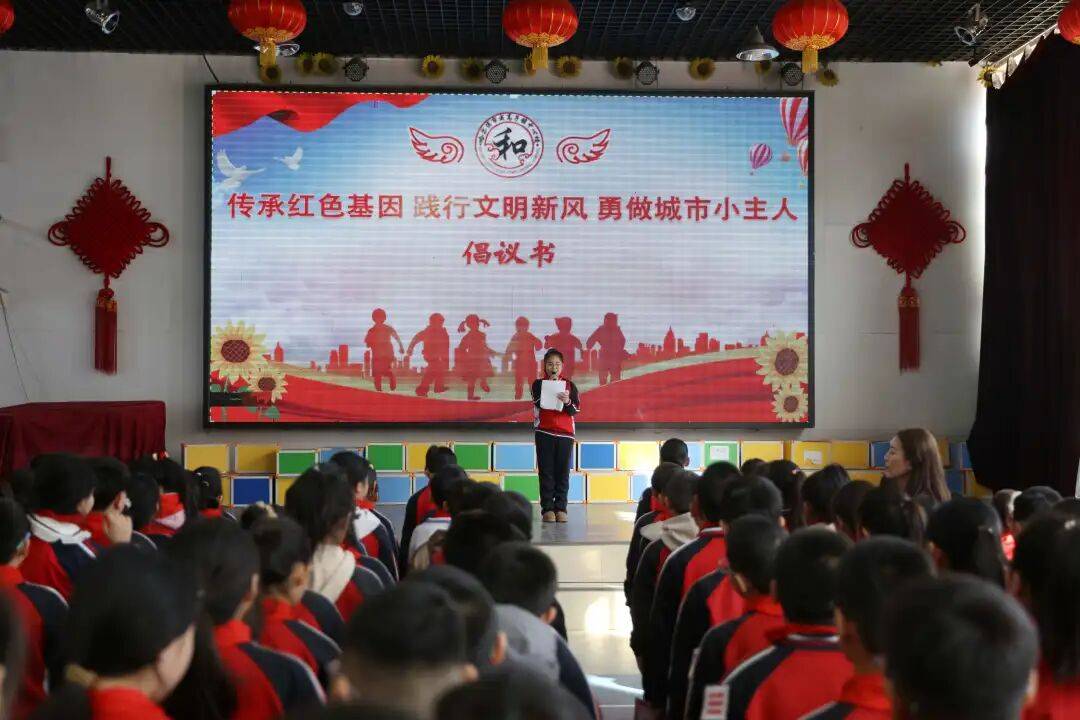 全区各学校结合实际,开展形式多样的“开学第一课”活动,并统一发布倡议书,号召未成年人铭记城市历史、厚植家国情怀,在知家乡、爱家乡的情感中,争当文明新风的践行者和城市发展的小主人。在第六十四中学的升旗仪式上,师生代表围绕活动主题进行国旗下演讲。第六十四中学校长在致辞中勉励学生赓续红色血脉、勇担时代使命。教师代表结合支边回岗经历,表达了坚守育人初心、传承红色基因的决心。学生代表在发言中号召同学们铭记历史、勇于担当,为家乡振兴贡献青春力量。区教育局一行到第六十四中学进行开学视导,并参加该校的主题升旗仪式。风华中学在升旗仪式上面向全体师生发出倡议,号召大家做红色基因的坚定传承者、文明新风的积极践行者和城市故事的生动讲述者。第四十九中学结合“思政、心理、安全、法治”四个主题开展“开学第一课”,将家国情怀教育与安全教育相结合,引导学生筑牢成长根基。