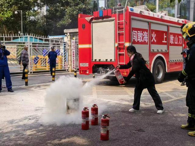 演练后,幼儿体验高压水枪、参观消防车,直观认识消防装备;全体教职工实操灭火器,掌握“提、拔、握、压”使用要领,提升初火处置能力。园方与消防部门分别总结点评,肯定成效并明确改进方向。
