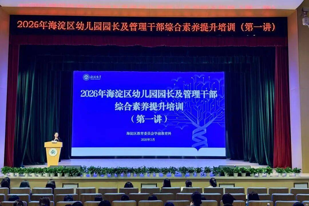 3月18日下午,由海淀区教委学前科举办的“2026年海淀区幼儿园园长及管理干部综合素养提升培训”第一讲在海淀区教师进修学校开课。全区近500名园长及管理干部齐聚一堂,聚焦“托幼一体化”这一民生热点,开启年度专业成长第一课。海淀区学前科科长刘海英主持培训。