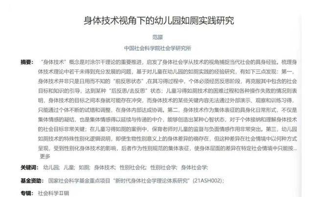 伦理失守的主要责任,首当其冲的是研究者自身伦理意识的淡薄。作为社科院副研究员,本该熟知科研伦理规范,也清楚幼儿属于弱势群体,涉及私密行为研究,必须征得家长书面同意。但研究者只向幼儿园报备就开展观察,刻意绕开了最关键的监护人同意环节;面对儿童私密如厕行为,不仅不做脱敏处理,反而用直白露骨的语言细致刻画动作细节,完全违背了“伤害最小化”原则,也违背了学术伦理规范。这种只重研究成果而不顾学术伦理的功利做法,难免让人诟病。