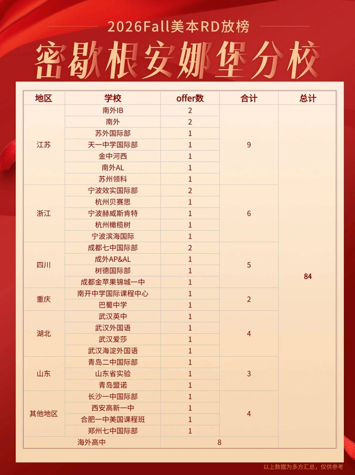 密歇根安娜堡分校狂撒84枚offer,国内统计到76枚,基本与去年持平;