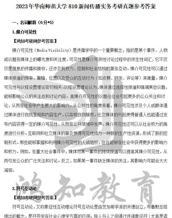 2018-2023年华南师范大学810新闻传播实务考研真题答案(回忆版)