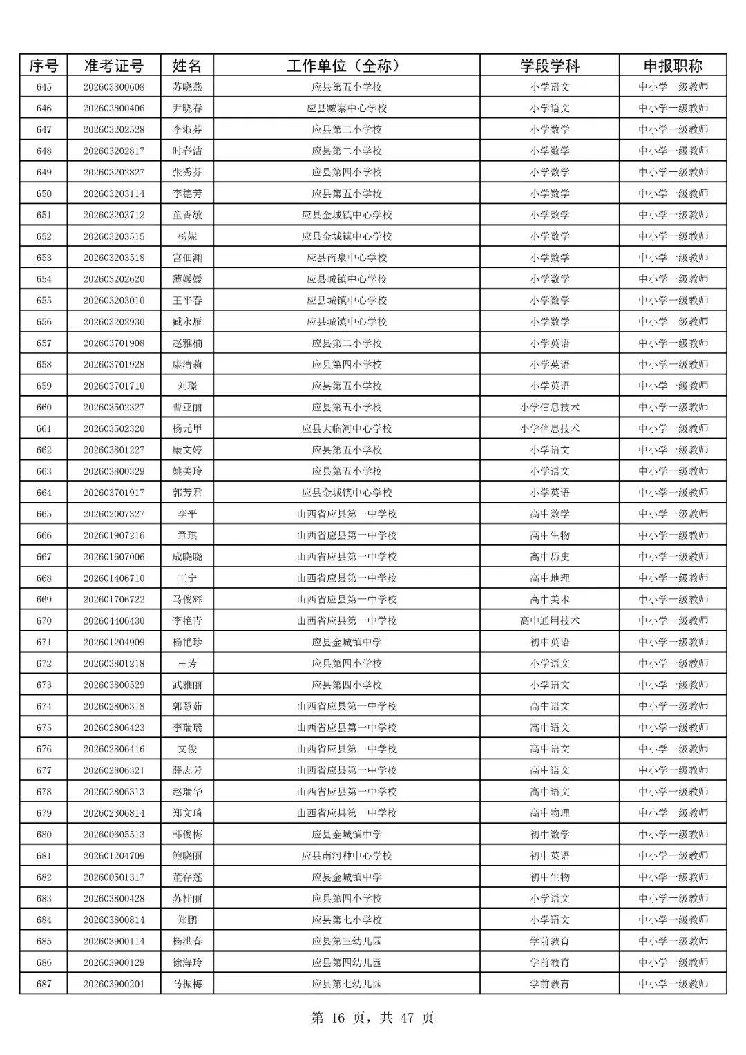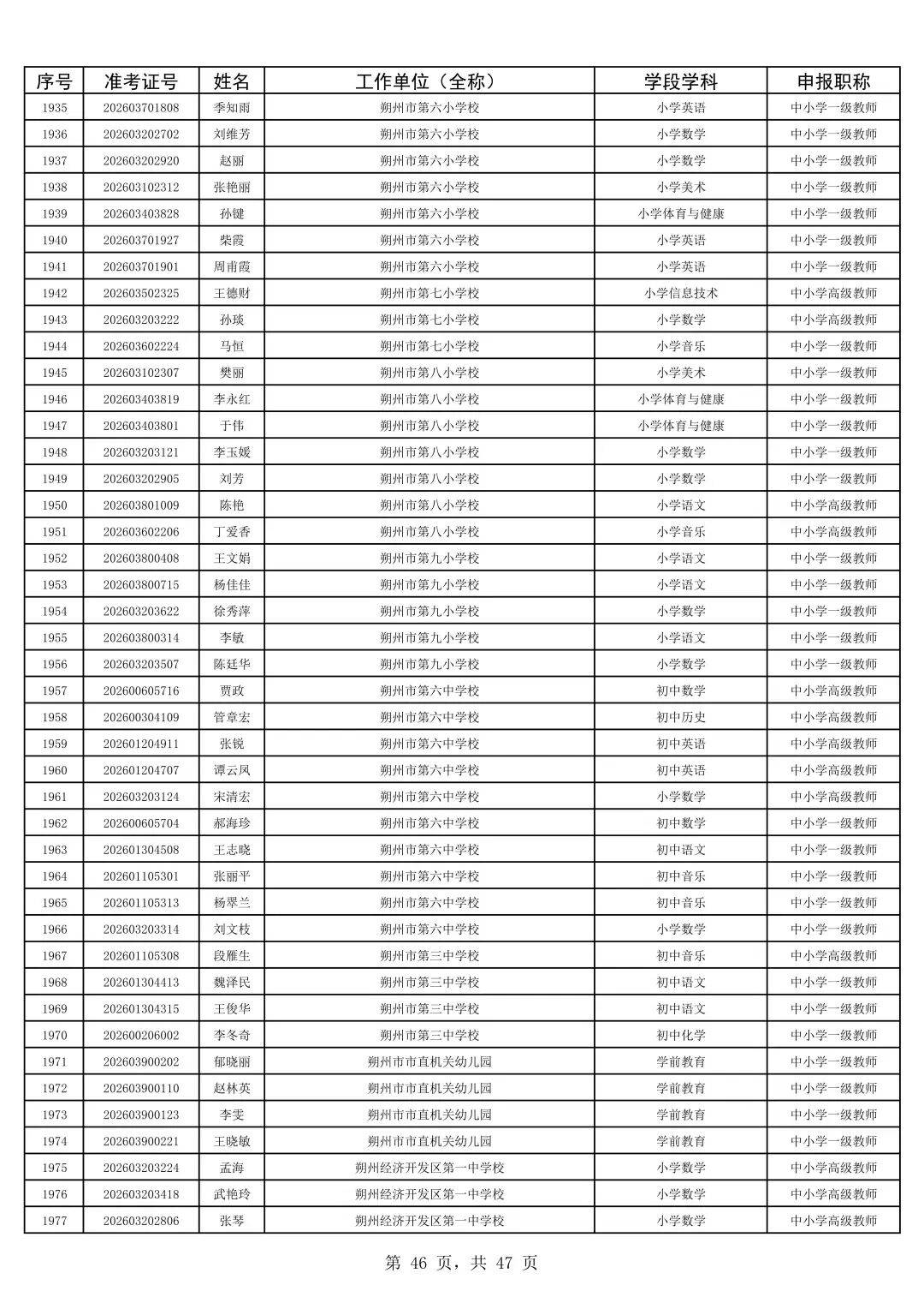 附件:2025年度朔州市中小学教师专业技术职称任职资格考试合格人员名单