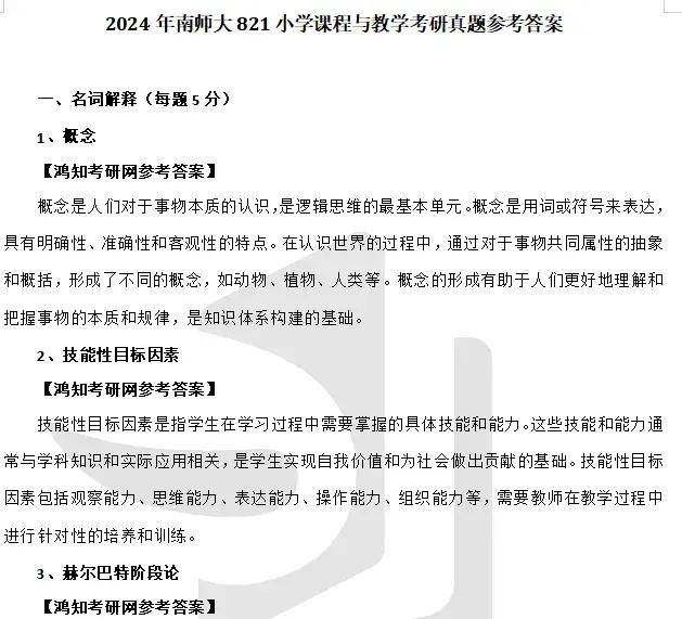2010-2025年南京师范大学822小学课程与教学考研真题答案详解