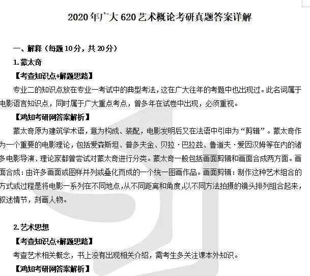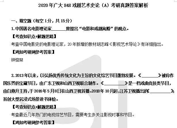 2012-2020年广州大学848戏剧影视史论考研答案详解【答案只有到20年】