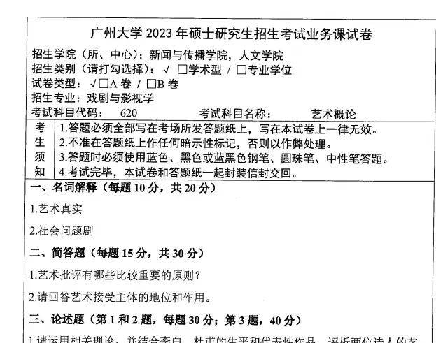2027广州大学新闻与传播学院艺术学考研全套资料【620艺术学概论+848戏剧影视史论】(真题答案+笔记题库)