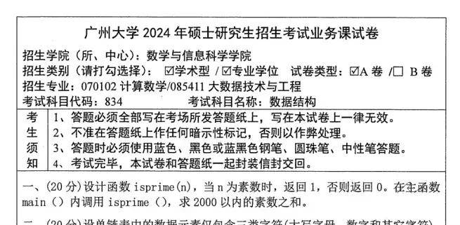 (计算数学之前考试科目:623数据结构,2022更名为:834数据结构(二))