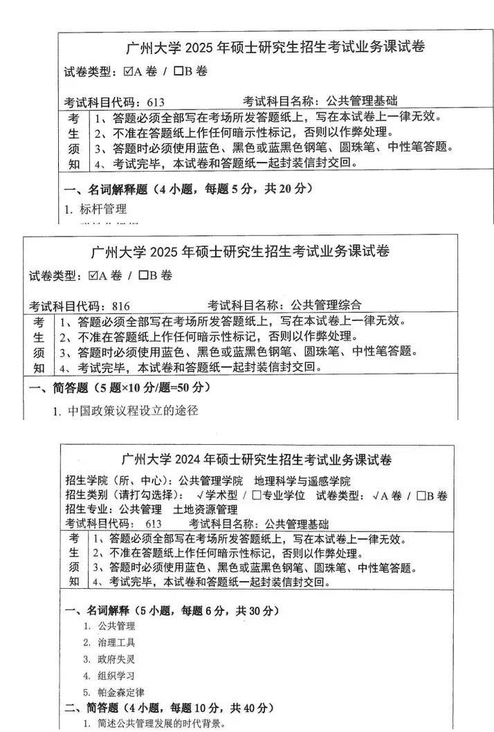 2012-2025年广州大学613公共管理基础考研真题试卷