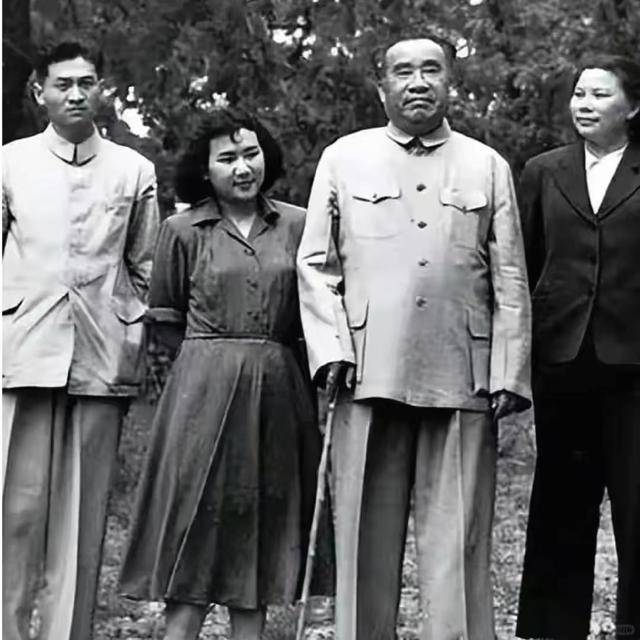 从左至右:刘铮(朱敏丈夫)、朱敏、朱德、康克清