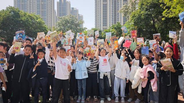 活动最后,同学们挥动手中图书,表达对阅读的热爱和对书主的感谢,一张张笑脸在书香中绽放。