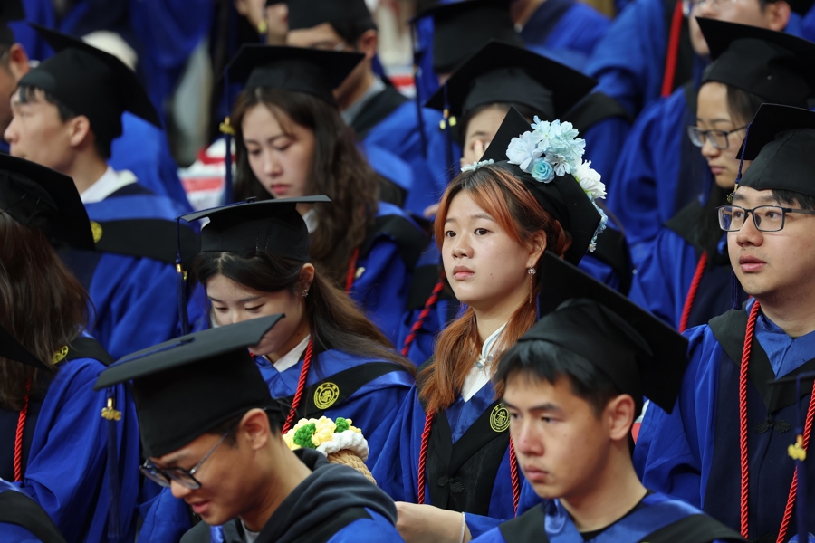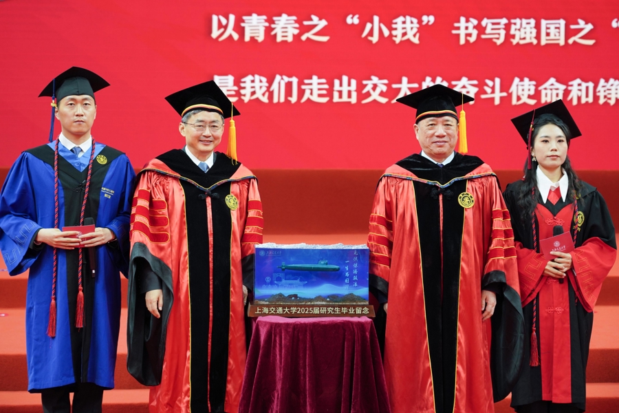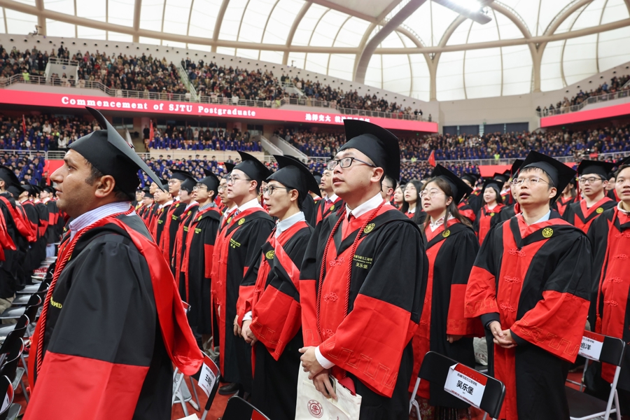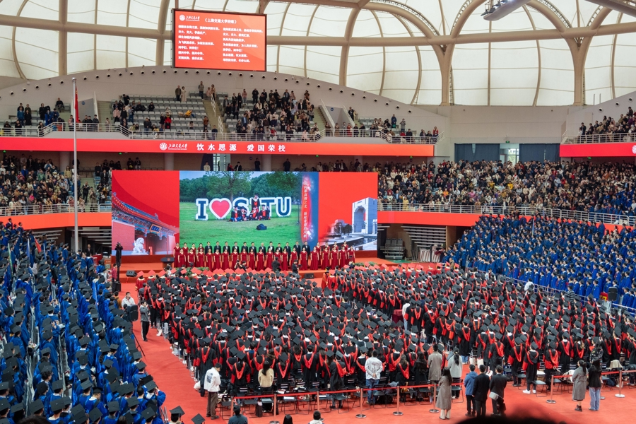 3月29日,上海交通大学2025年研究生毕业典礼暨学位授予仪式在闵行校区霍英东体育中心举行。3400余名学子获得学位,完成交大“最后一课”。