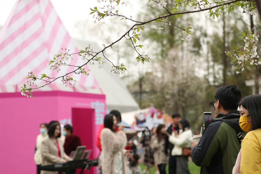 樱花的花语代表了爱情与纯洁。今年的樱花季,以“甜蜜樱缘”为主题,围绕春日的浪漫氛围展开。3月29日至3月30日,在微风礼堂举办的“春日市集”是甜蜜产业与文旅深度融合的缩影。
