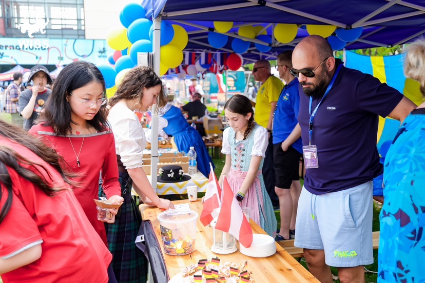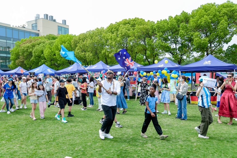 本次活动在欢快的“国旗巡游”中拉开帷幕,来自不同国度的师生家长穿着各具特色的鲜艳的民族服饰,跟随音乐节拍绕场展示,瞬间点燃了现场气氛。西华学校家长Tina?Chen表示,“我穿着澳洲特色服饰来参加活动,还通过市集展示了澳洲传统果酱。孩子们可以从视觉、触觉、听觉各方面去体验世界的精彩,我想这就是我们每年喜欢参加这个活动的原因。”