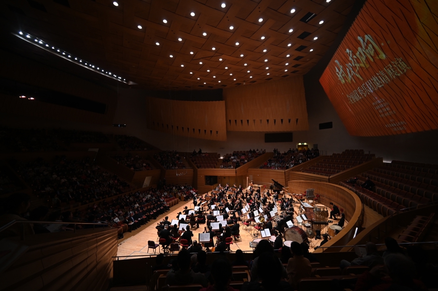 展演首场音乐会上,青年指挥家张橹执棒上海交响乐团带来《红旗颂》《黄河》《我们的世界》三部作品。今年是吕其明的《红旗颂》诞生60周年,作品描绘了1949年10月1日新中国诞生时激动人心的情景,经典的旋律历久弥新。钢琴协奏曲《黄河》由殷承宗、储望华、盛礼洪、刘庄四人根据冼星海《黄河大合唱》改编,以磅礴旋律刻绘抗战时期的苦难与抗争。《我们的世界》由上海交响乐团委约四位“80后”作曲家黄凯然、张巍、杨帆、郑阳联合创作,通过“温暖中国”“速度中国”“幸福中国”和“未来中国”四个乐章,既是对当下生活的记录,又是一封写给未来的信。